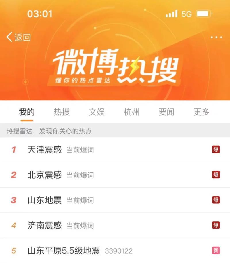 今天凌晨,多地网友也发微博表示有震感。北京、山东、天津、河北震感,成为爆词,登上热搜。