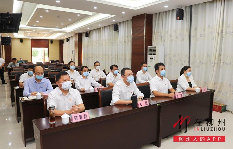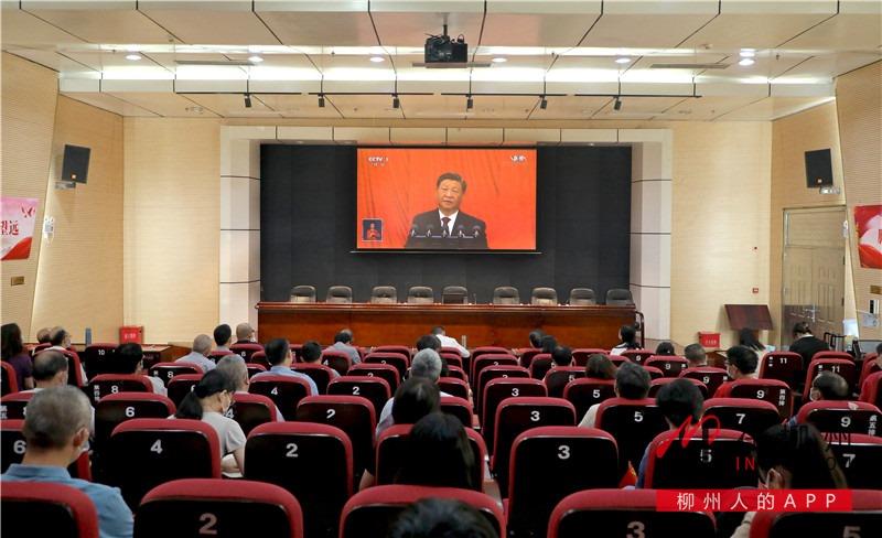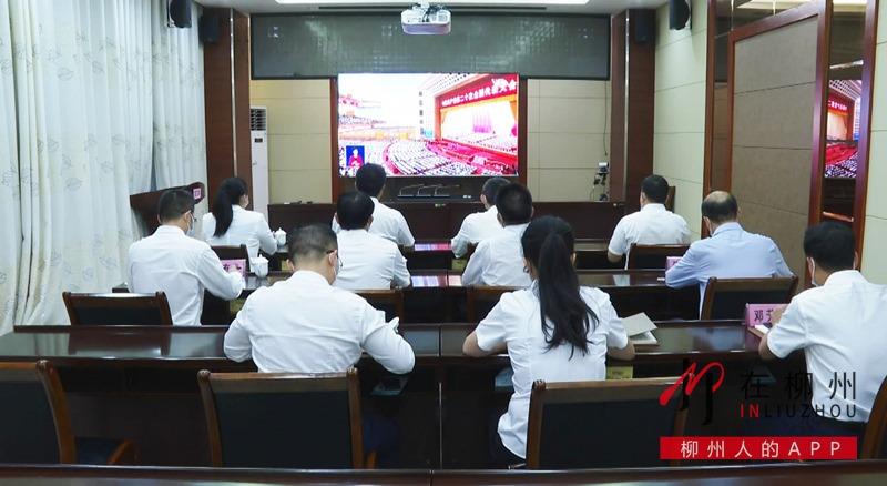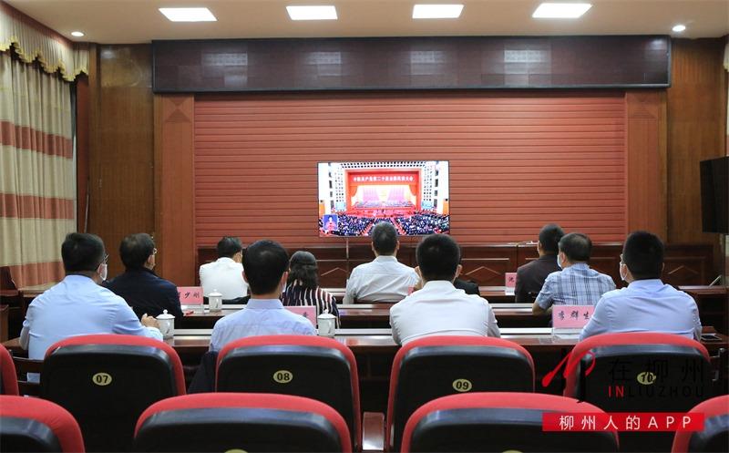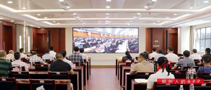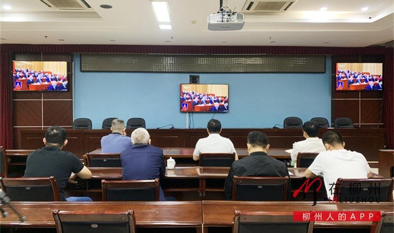 ▼柳江区四家班子领导集中收听收看党的二十大开幕会。
