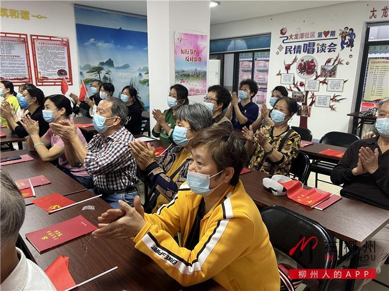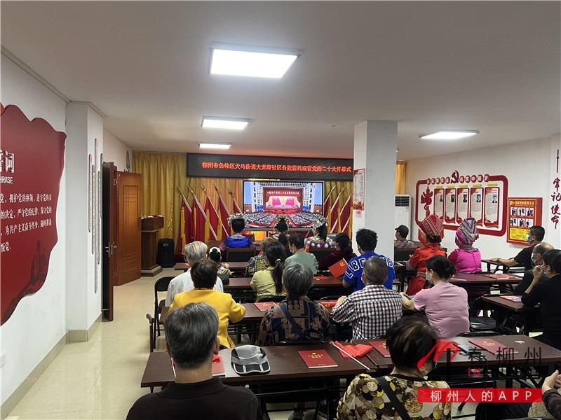 ▼在鱼峰区天马街道大龙潭社区,近50位社区居民早早来到了社区服务中心,怀着激动的心情一同收听收看党的二十大开幕会。