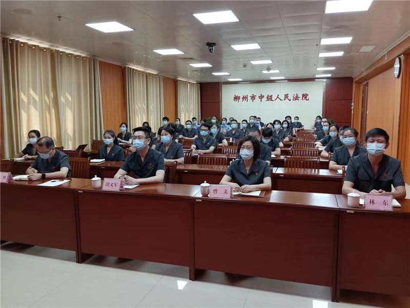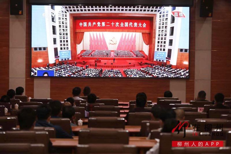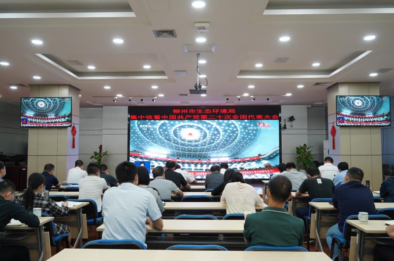 ▼柳州市生态环境局干部职工收听收看党的二十大开幕会。