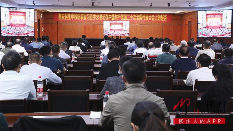 ▼融安县四家班子领导集中收听收看党的二十大开幕会。