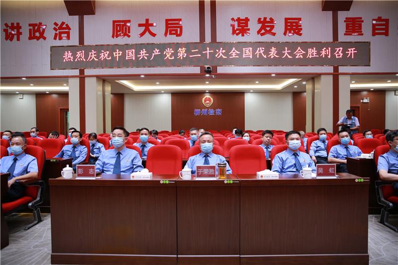 ▼市人民检察院干部职工收看党的二十大开幕会。