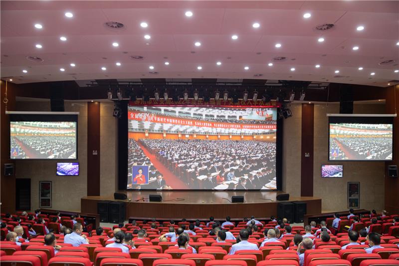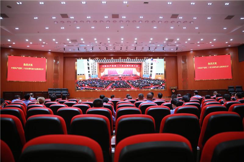 ▼鹿寨县四家班子领导集中收听收看党的二十大开幕会。