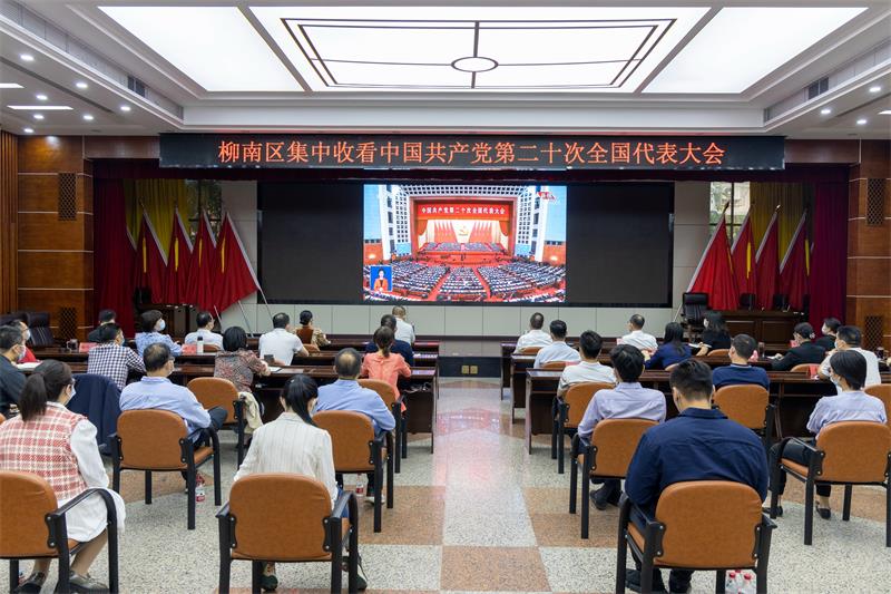 ▼柳南区四家班子领导集中收听收看党的二十大开幕会。