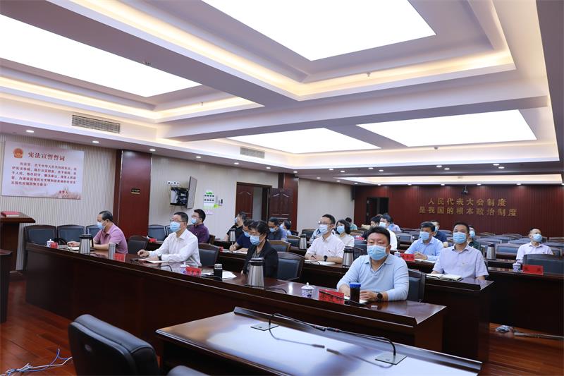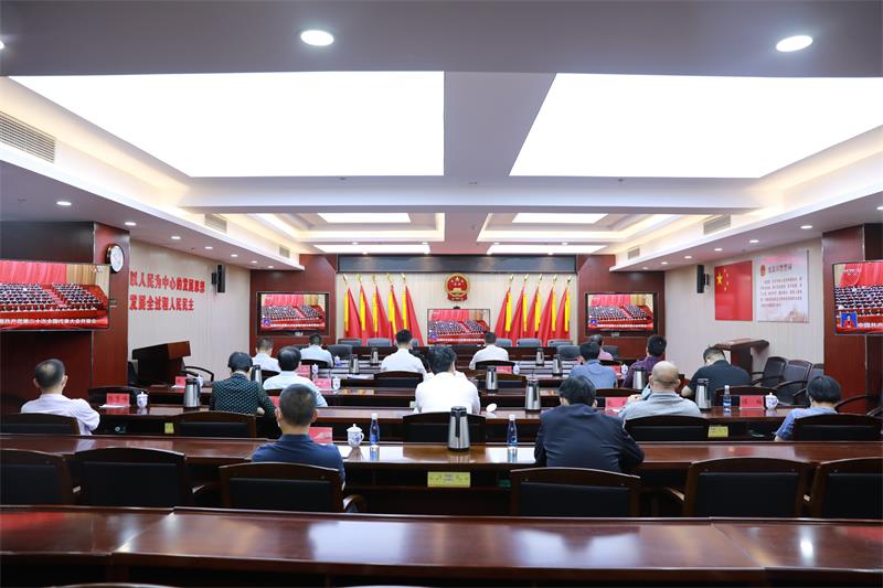 ▼融水苗族自治县四家班子领导集中收听收看党的二十大开幕会。