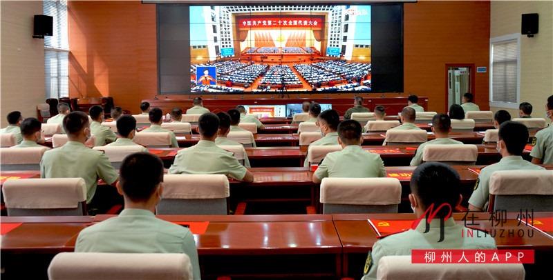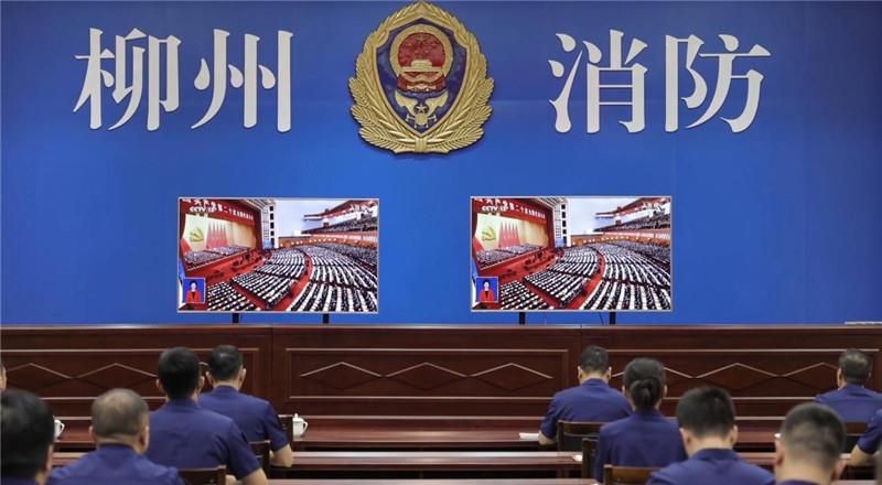 ▼柳州市消防救援支队在全力做好各项安保工作的同时,组织全市消防救援人员、政府专职消防员、文员收看党的二十大开幕会。