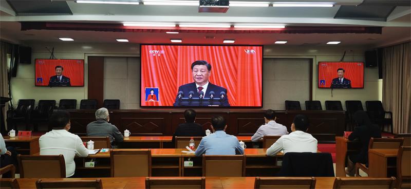 ▼北部生态新区主要领导集中收听收看党的二十大开幕会。
