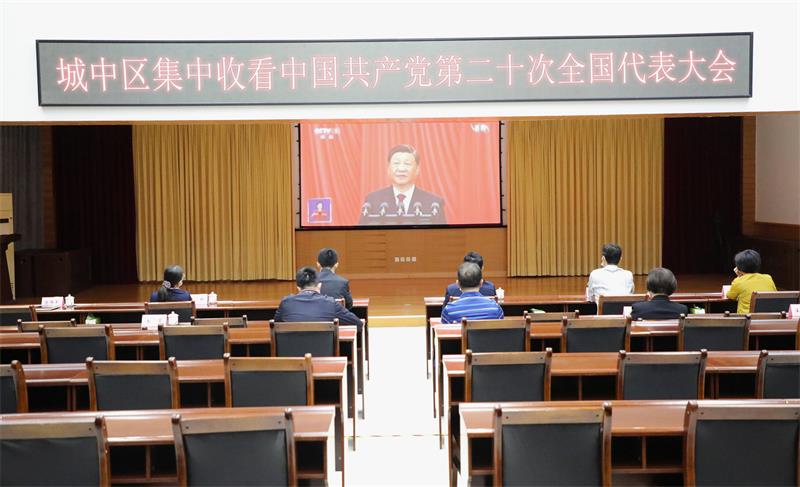 ▼城中区四家班子领导集中收听收看党的二十大开幕会。