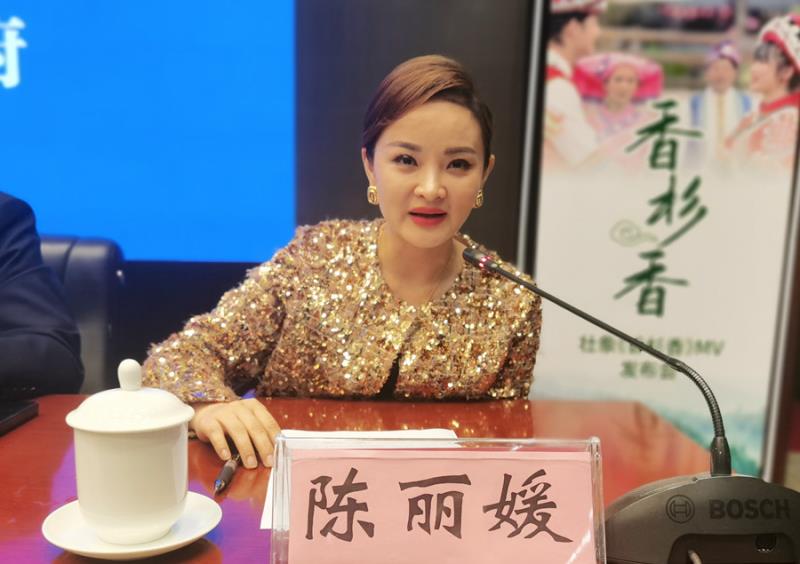 非常开心能够来到美丽的柳州参加这首歌曲《香杉香》MV的新闻发布会,柳州山清水秀,空气特别清新,这里就像是天然氧吧,我特别喜欢这个地方。说到《香杉香》这首歌,我首先觉得特别有这个缘份,覃艺馨老师把曲谱发给我时,我一看就特别喜欢,这首歌词曲很有带入感,节奏欢快、明朗、活泼,歌词通俗易懂,很有意境,有画面感,关键的是特别适合我的音域,演唱起来朗朗上口。歌曲《香杉香》体现的香杉文化,它能勾起我们儿时的记忆,长大后的乡愁,初恋时的甜蜜,永久的情怀。希望大家都能喜欢《香杉香》这首作品。