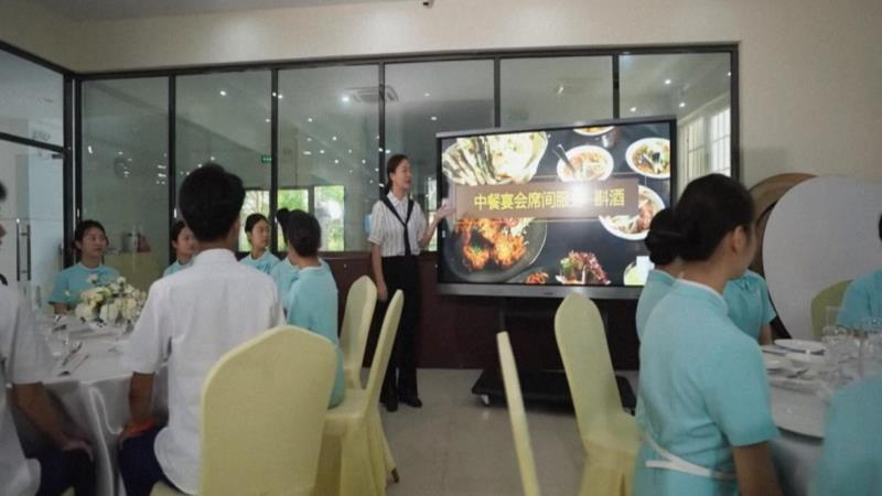 市旅游学校校长闭柳蓉介绍,学校在三江开展了民宿管家的培训,还把学校的职业体验中心设到了三江;帮助融安开发了“两树一草”的精品研学路线;从2018年至今,学校每年都和柳江区协办柳江区荷花节……“我们学校有工作室,有智慧旅游工作室、金钥匙酒店工作室、礼仪工作室等,通过工作室跟企业做更深一步的合作,把企业真实的项目带到学校里面来,让学生积极地参与,通过这几个方面的产教融合,对学生的技能有很大的提升。”