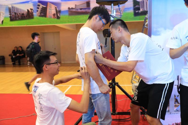 教师代表、行政服务人员代表、宿管员代表,保安、保洁、食堂员工代表共同见证了同学们的成长,并接受毕业生献花致谢。