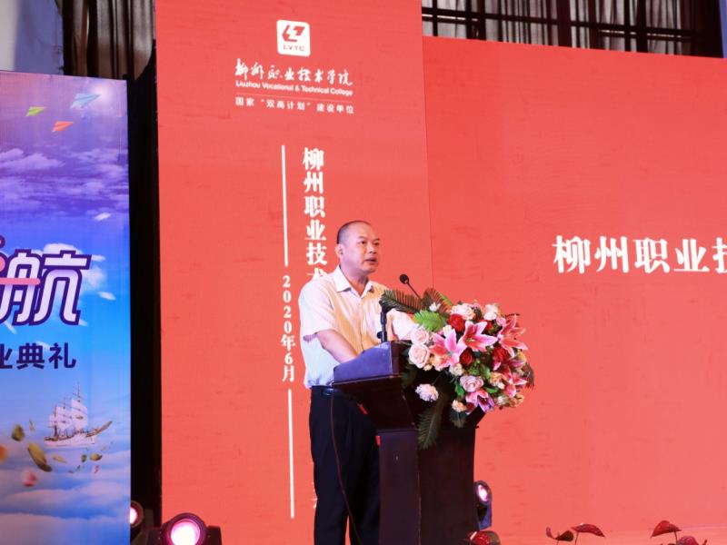 校长甘金明在致辞中向2020届3500名毕业生致以热烈祝贺,希望同学们胸怀祖国,勇担重任;乐观向上,积极进取;加强学习,提升本领;希望同学们秉承工匠精神,以匠心致初心。将理论知识与实际工作相结合,脚踏实地、勇往直前,成为祖国需要的大国工匠,担起中华民族伟大复兴的历史重任,期盼着同学们在新的天地里建功立业,再创辉煌!