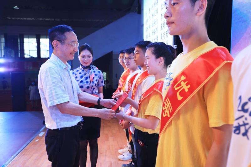 校党委书记刘子林(左)为获得全区优秀毕业生荣誉的17名代表颁发证书。