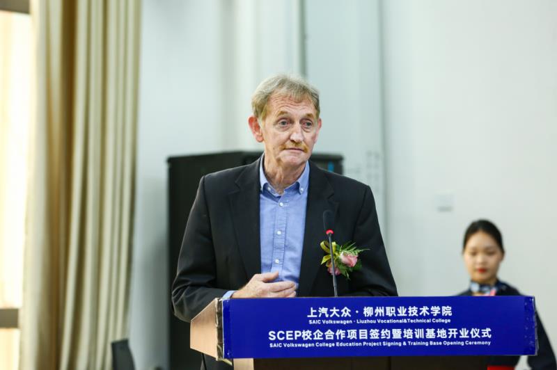 上汽大众售后服务技术高级总监Patrick Okeeffe先生在开业仪式上表示:“加快技能型服务人才队伍的培养是上汽大众正面临的紧迫任务。通过‘校企合作、优势互补’实现人才培养与企业用人需求对接、课程教材与岗位技能对接,是我们保持领先发展的长期措施。”“因此,对于SCEP校企合作项目这样一项持续推进并不断深化的人才培养工程 ,我们一直高度重视并给予大力支持。”他坚信,上汽大众与柳职的合作是强强联手,必将为未来开拓一个崭新的局面,实现学校、学生、厂家和经销商的四方共赢。