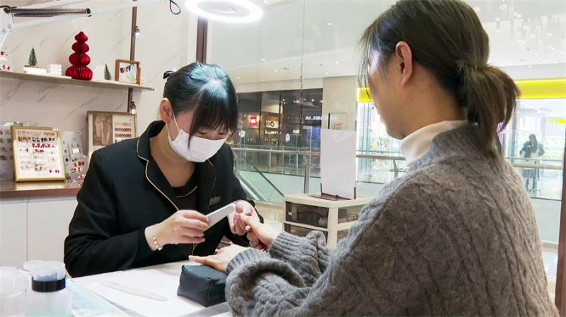 市民:“我现在美睫已经种好了,也没多少天就过年了,怕预约不上,所以尽快这两天做好美甲。”