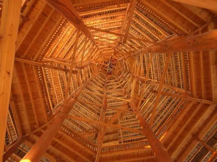 鼓楼则属木质多层塔式高亭形结构,其外形平面均为偶数,外形立面均为奇数重檐。鼓楼的顶部外形,有悬山、歇山和多坡攒尖等三种形式。