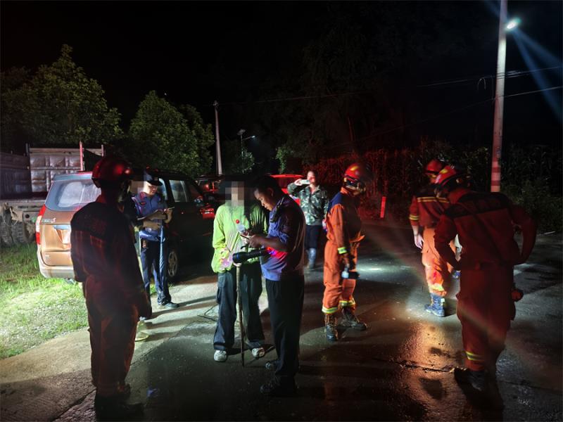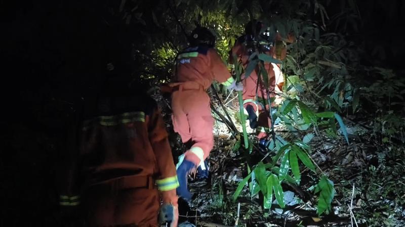 由于路途遥远,21时23分,消防救援人员到达山脚下后,得知当地民警已经在村支书的带领下上了山。因为不熟悉当地环境,加上天色渐晚,消防员只好求助当地村民,由当地村民担任向导带领消防员上山寻找。由于刚下过暴雨,陡峭的山路变得湿滑泥泞,沿途都是藤蔓柴草,给搜救工作增加了不少难度,消防员依靠手电、木棍等,在漆黑山林中摸索前进。