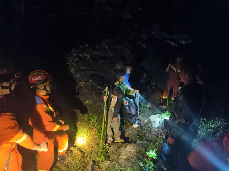 30多分钟后,消防员成功与当地民警、村支书汇合,也成功找寻到了求助人员。稍做休整后,消防员小心护送驴友,一边安抚两人情绪,一边带着他们缓慢下山 。经过一个多小时徒步,成功将人员转移至安全地带。