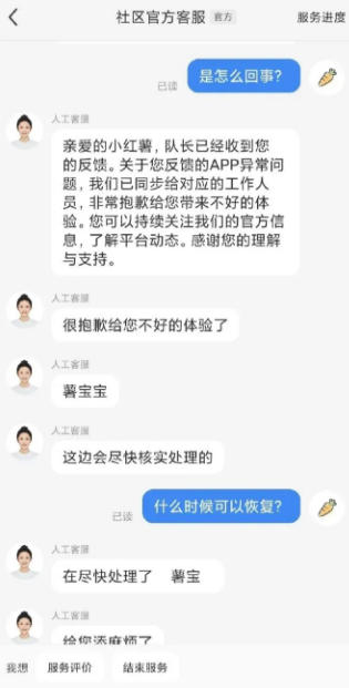 对此,小红书客服回应称,关于用户反馈的APP异常问题,已同步给对应的工作人员,非常抱歉带来不好的体验,已在尽快处理。