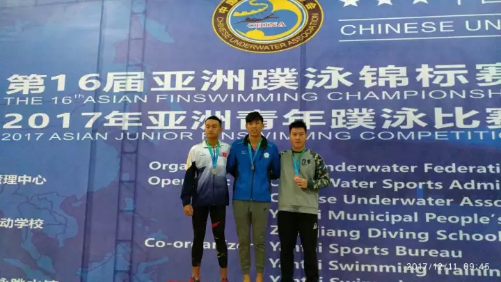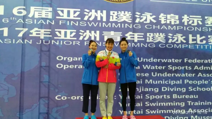 第十六届亚洲蹼泳锦标赛暨2017年亚洲青年蹼泳锦标赛12日在烟台收官,本次比赛,柳州三名运动员舒程静、邹霆泽、张思骞分别代表中国队、中国青年队参加比赛,其中,柳州“美人鱼”舒程静在比赛中获得女子50米蹼泳、100米蹼泳、50米潜泳、4X100米蹼泳接力、4X200米蹼泳接力共5枚金牌;邹霆泽获得青年50米双蹼铜牌;张思骞获得青年男女混合4X50米蹼泳接力铜牌。值得一提的是,本次比赛中国队共获19枚金牌,18枚为女队所得,其中舒程静就拿下了5枚,成绩卓越。