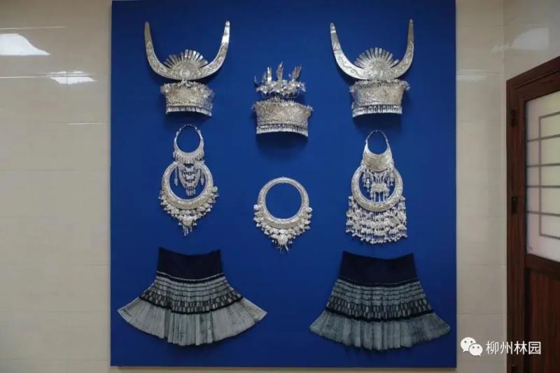 想要了解一个民族的历史发展,需要先读懂他们的民族服饰。民族服饰上写满民族发展的历史,写满了沧海桑田的变迁。苗族文化展示厅里主要展示苗族四大工艺:苗锦、银饰、蜡染、刺绣,每一件苗族服饰里基本上都蕴含了这些传统工艺。民族服饰展厅集中展示壮、侗、瑶三个民族的民族服饰。其中有很多是从融水、三江、金秀等少数民族地区收集到的传统服饰;此外还有广西刺绣一级工艺大师石培香老师制作完成的民族服饰。